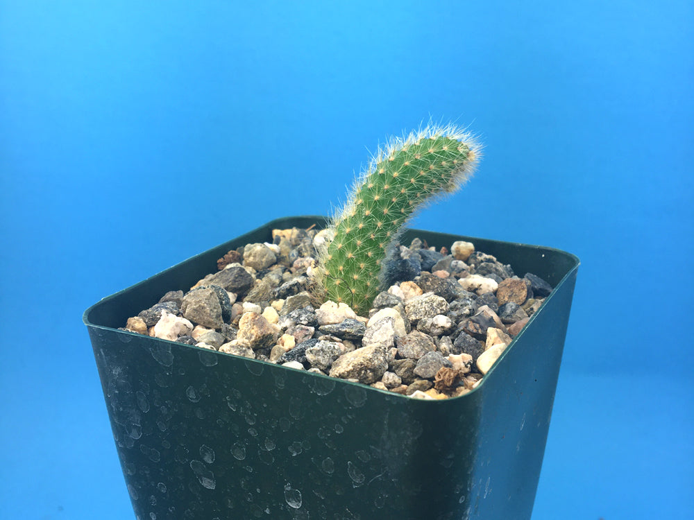 This plant is native to the Bolivian department of Santa Cruz in the province of Florida, Bolivia. Long trailing stems covered in white hairy spines. Water this plant sparingly in the spring/summer and keep dry over the winter time. The flowers are and orange/red.
