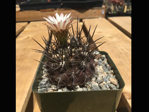 This plant is of unknown origin, most likely Chile. The name has never been published and is presumed to be a name given by a nursery or seed supplier. It is often refereed to as a synonym of Eriosyce taltalensis or Erisyce paucicostata. This plant can grow in full sun to part shade. Water in the summer but let it dry out during the winter. The flower can vary from white to creme with shades of pink and yellow.