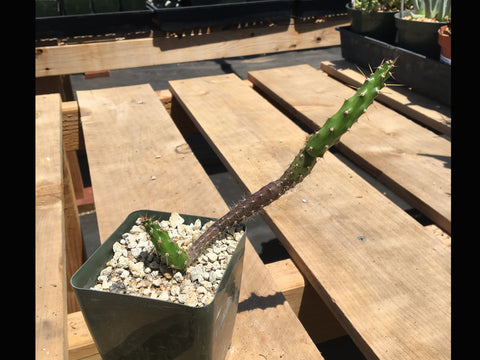 This plant is native to Bolivia, Uruguay, Paraguay and Argentina. Dark green stem well armed with stout spines. Long 1-2" thick branching stems grow upright at first, but become prostrate. The flower is large and white. Fruit is very similar to Dragon Fruit.